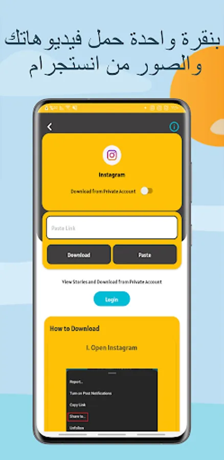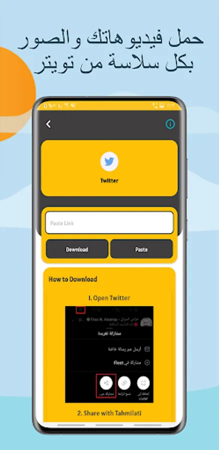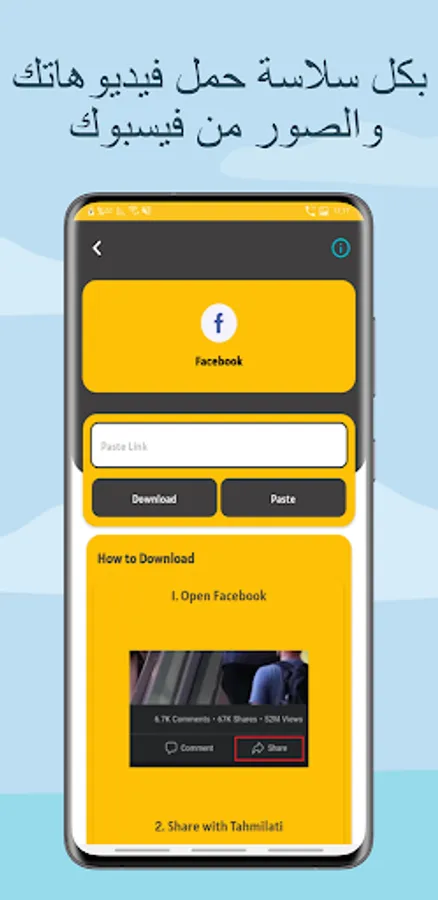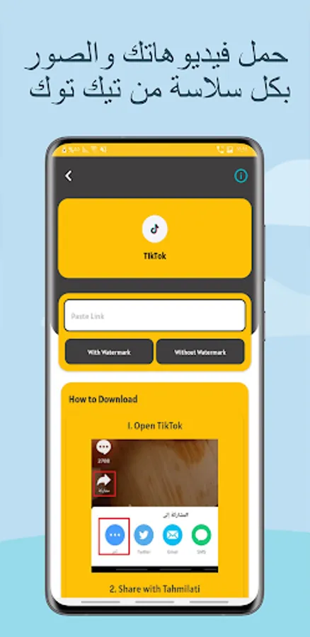 ⦁ Open social media platform and share any video to Tahmilati App or Copy Video, Image Link.