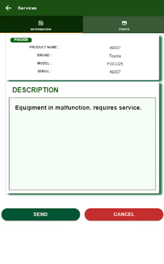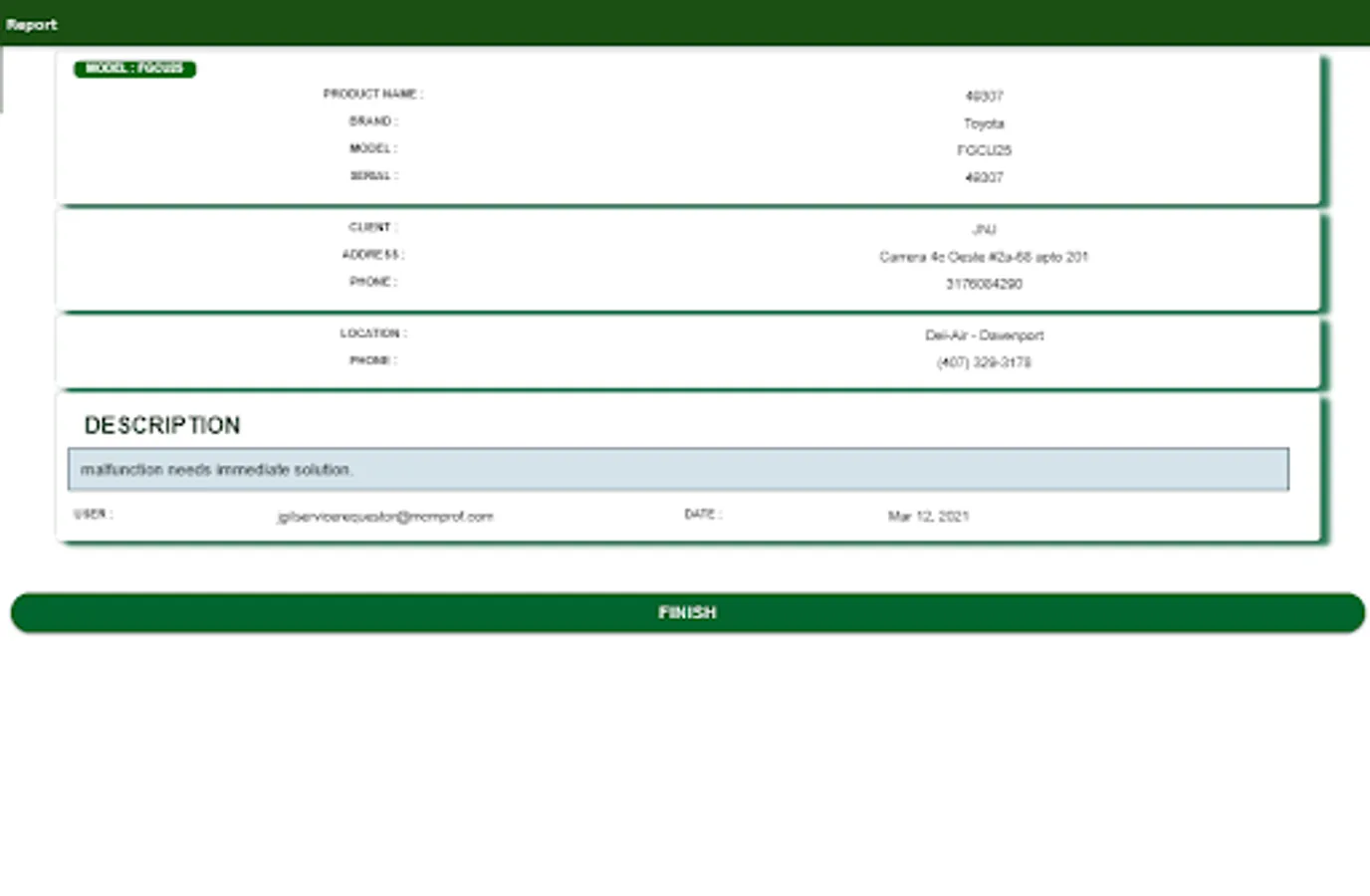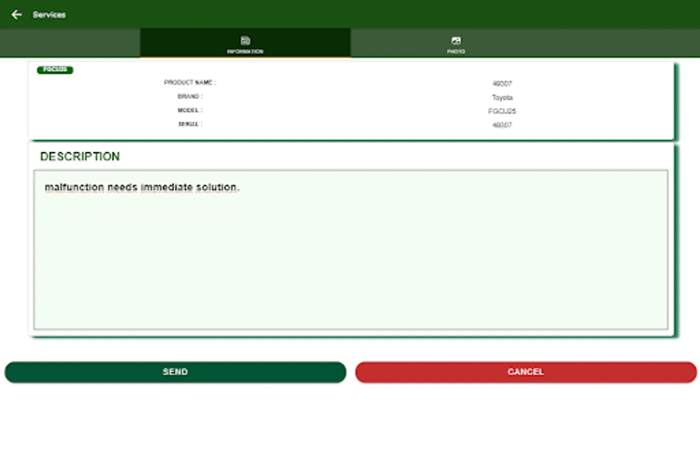 • Client Scans QR code, note issue, optional photo, send (SIMPLE)