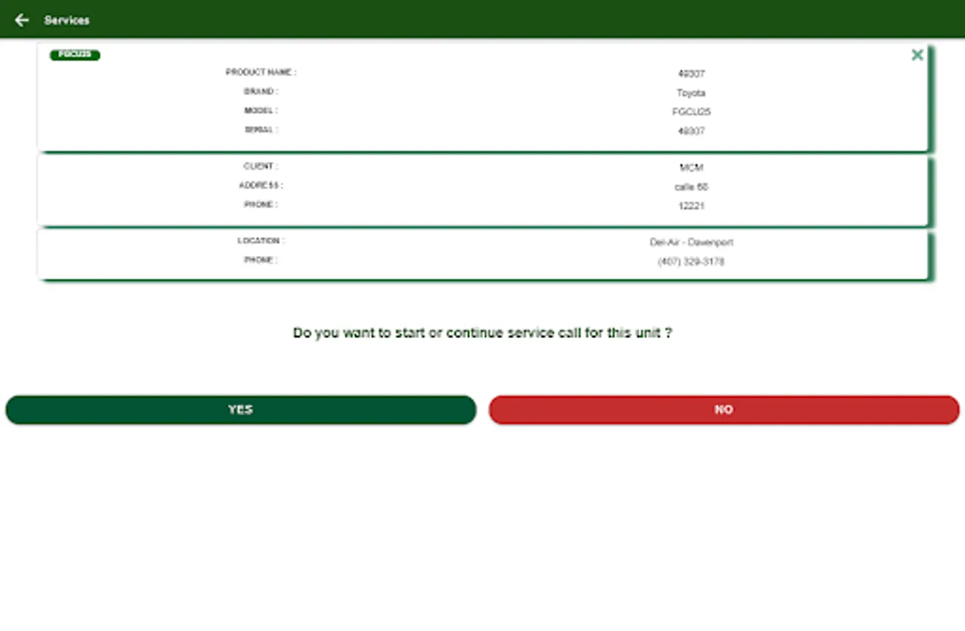 • Tech arrives, scans unit QR, client & dispatch are notified onsite