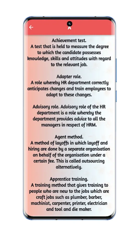 Whether you are an HR professional, a manager, or even interested in HR concepts, in this app you will find a valuable resource that enhances your understanding of HR terminology.