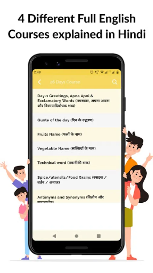 - It contains 4 types of Learn English Courses i.e 26 Days, 66 Days, 51 Days and 21 Days Courses. You will Learn