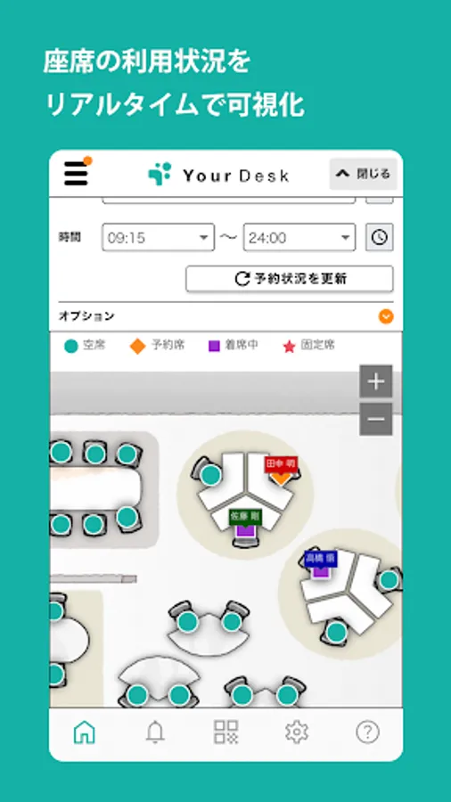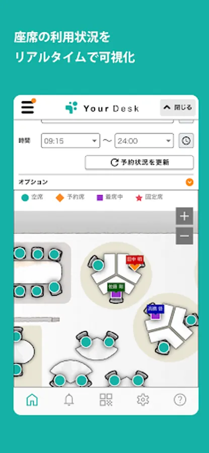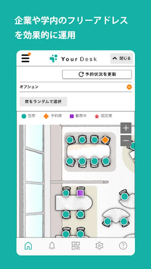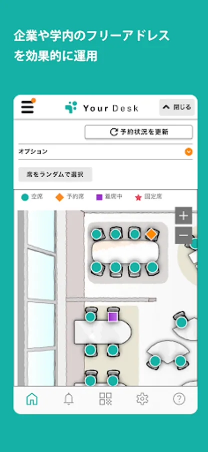 With a full range of functions, such as direct check-in using a QR code, random seat assignment, and the ability to set seats according to purpose, we aim to improve work efficiency and solve the problems of telework and seat management.