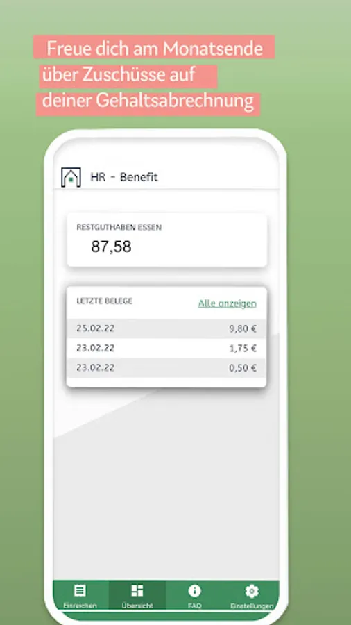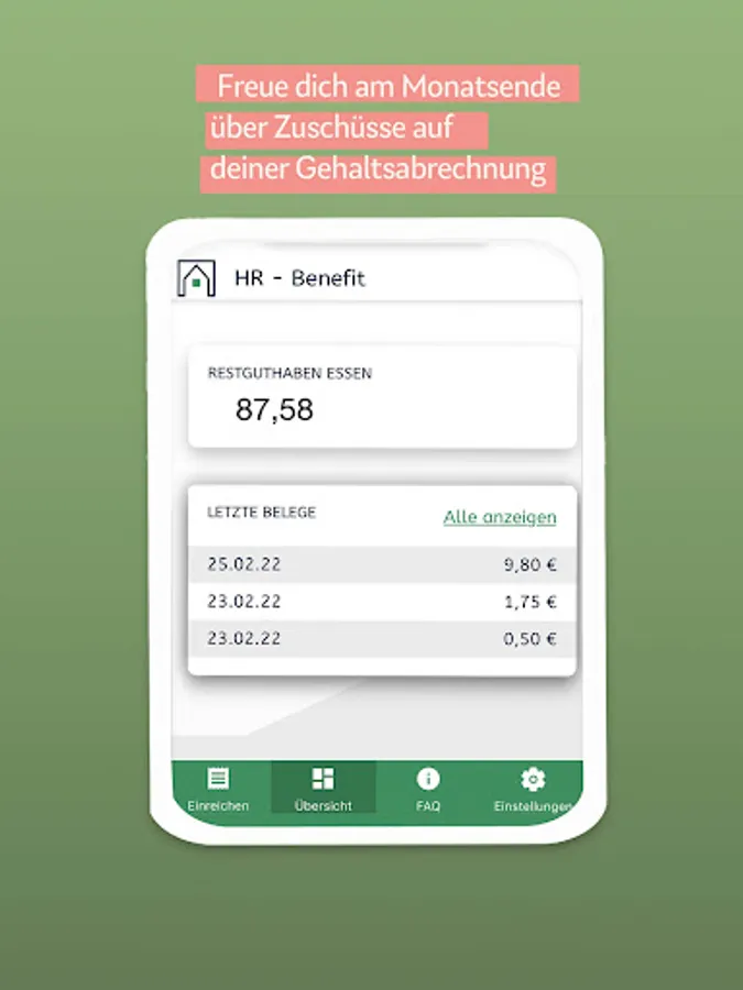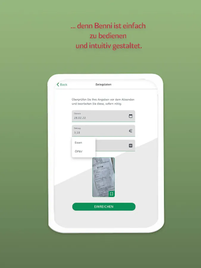 Say goodbye to your paperwork! Easily integrate Benni into your daily life to secure your grants from your employer. Simple, uncomplicated and 100% digital. With Benni you can conveniently redeem digital benefits from your employer. So you have everything at a glance and never miss a subsidy again.