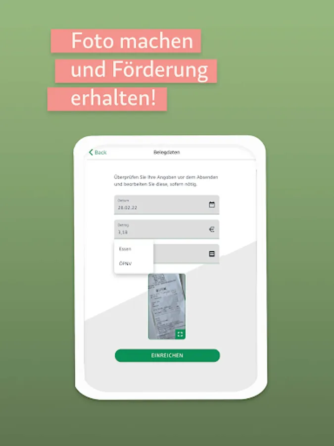 Hard-working employees at home can also look forward to government funding. Use Benni for your supermarket purchases and then simply cook your own lunch. You can also use public transport, even if you don't go to work.