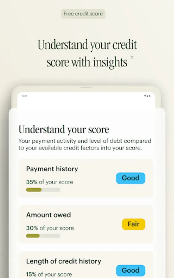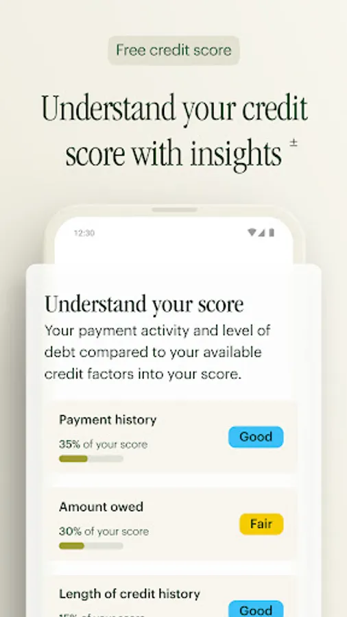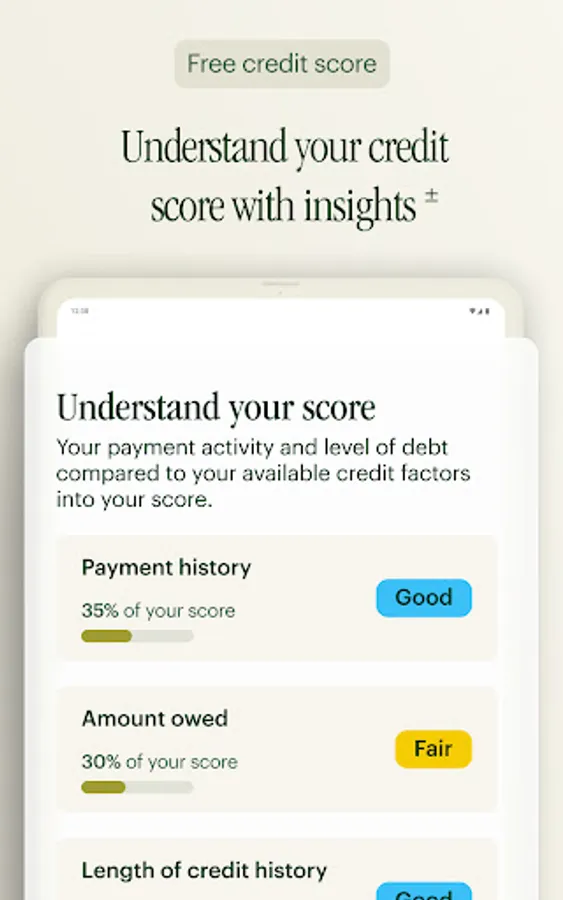 - Credit Score. Stay on top of your score, get score insights, and better understand your credit score. ±