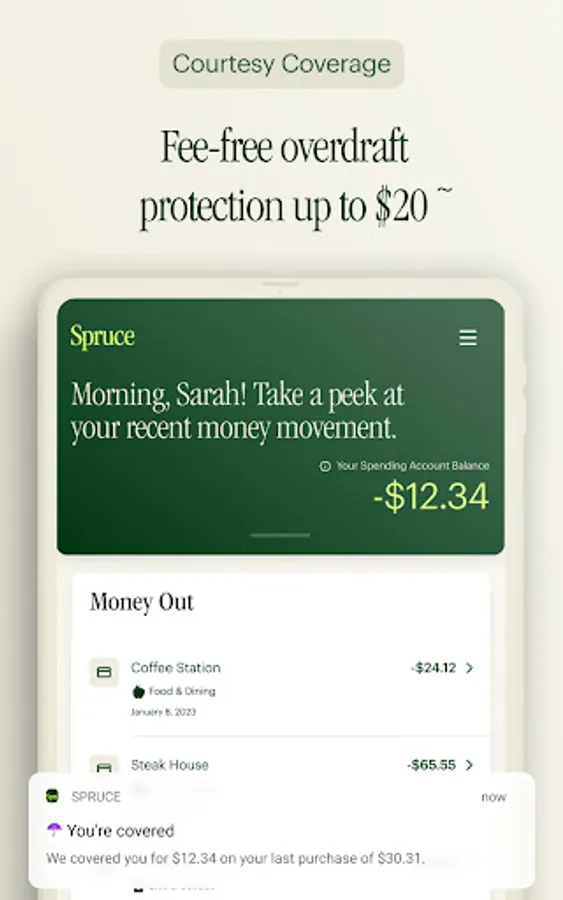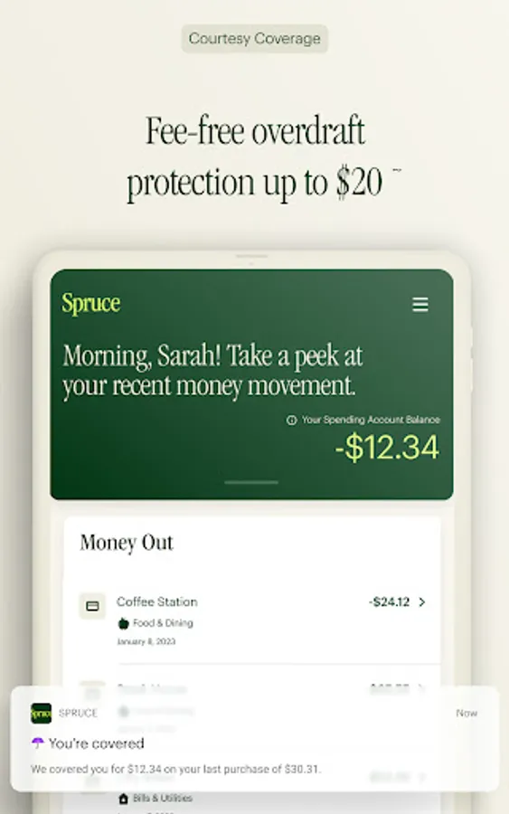 - You're Protected With Courtesy Coverage. Enroll in direct deposit and get up to $20 fee-free overdraft protection once activated. ~