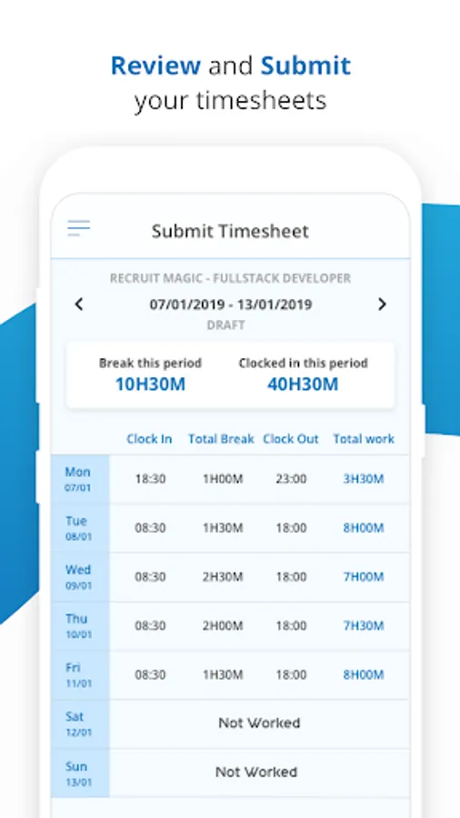 - Get instant notifications for your approved / rejected timesheets, including timesheet submission reminders.