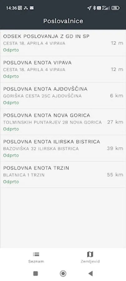 • display of branches with opening hours and contact information;