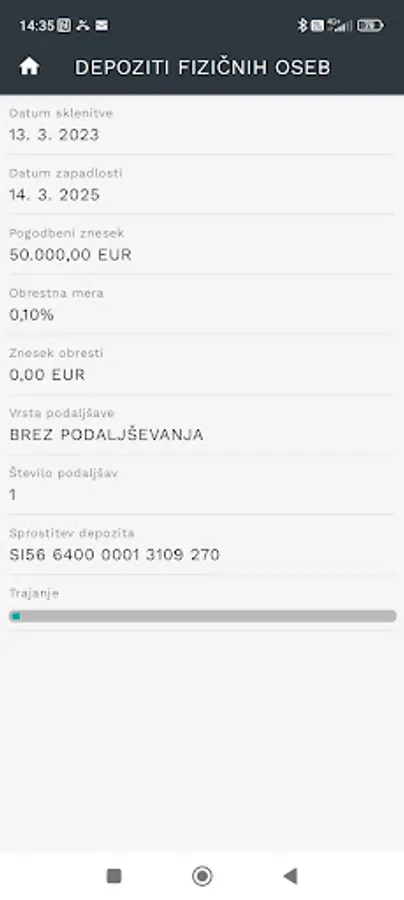 • review of data on concluded deposits (balance, date of release, graphical display of duration);