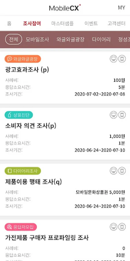 2. You can check the status of payment of rewards for participation in the survey through your smartphone.