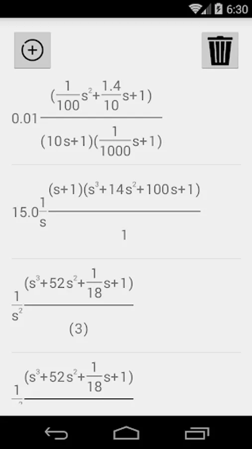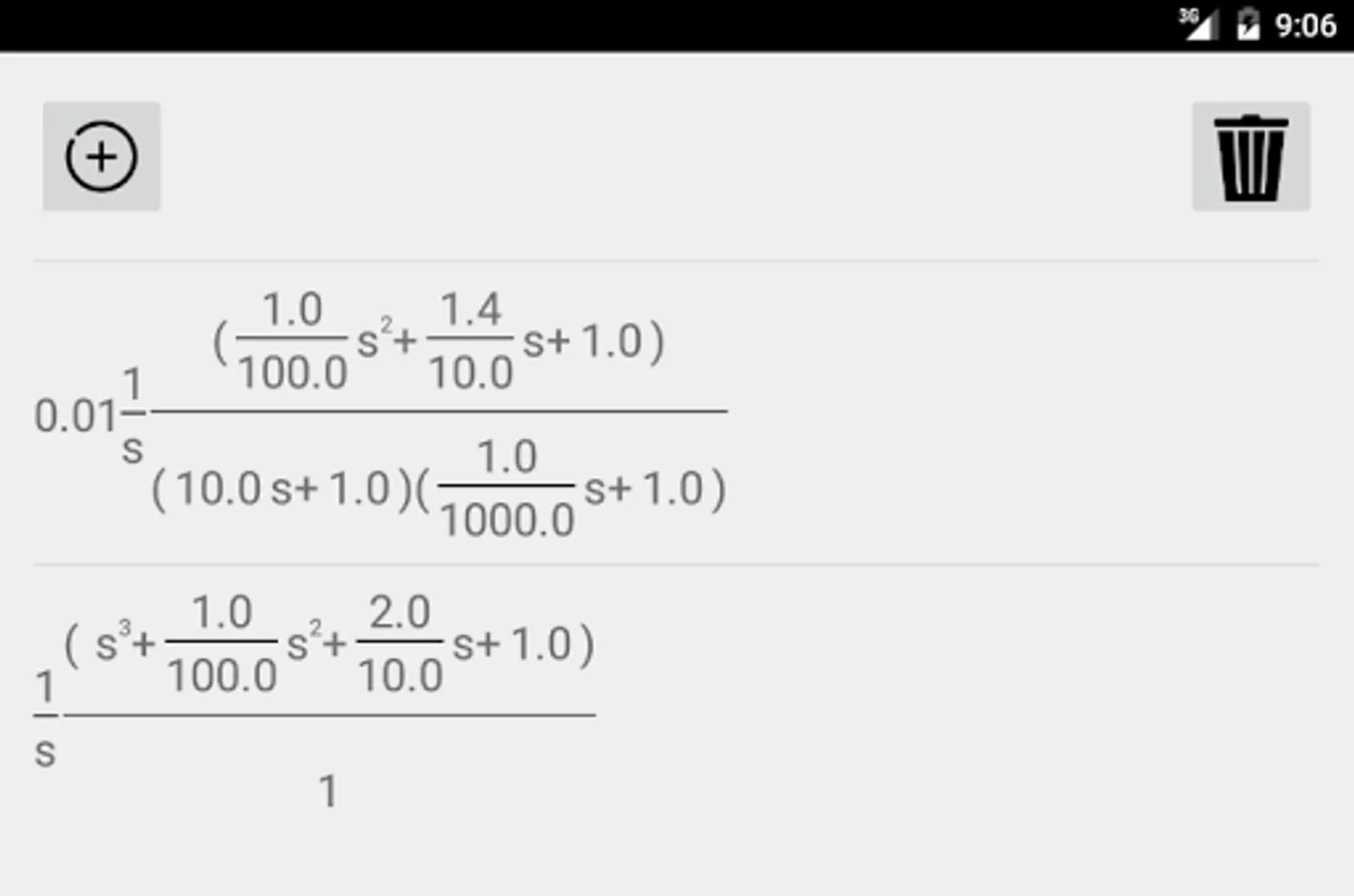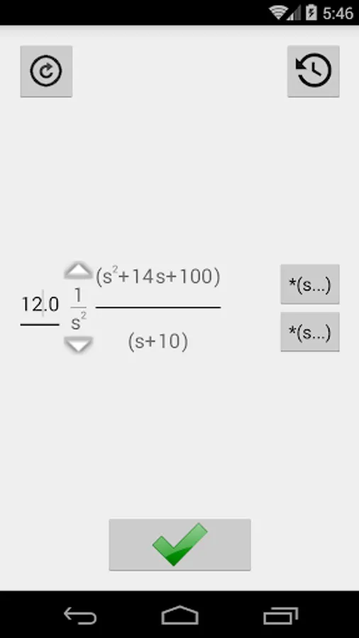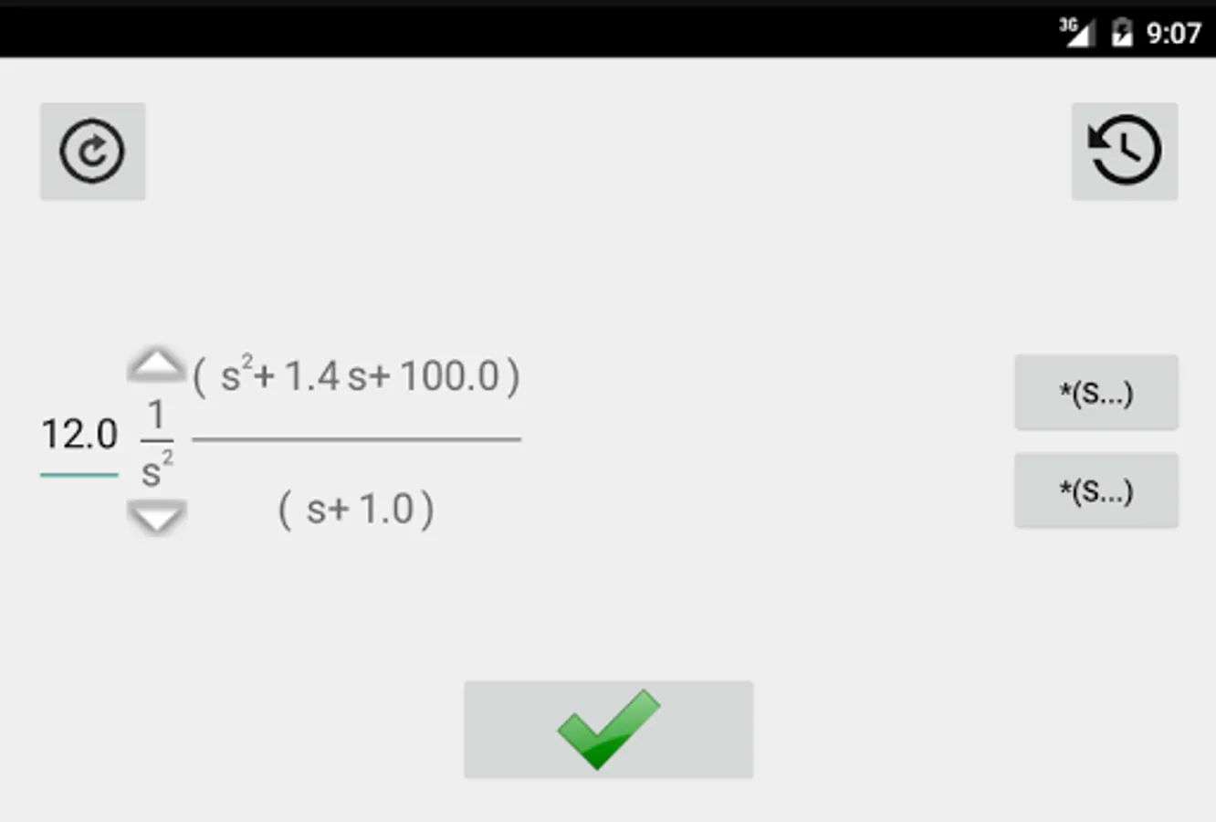 The app also contains a history of the 10 most recently used transfer functions. In case of complex transfer functions you don't have to reenter them.