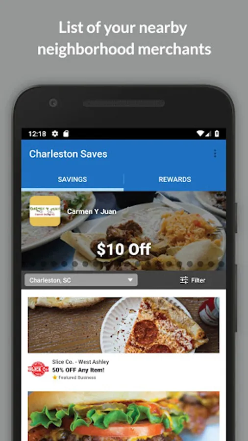 Your free Charleston Saves app is packed with hometown value. This convenient app, made specifically for your locale, featuring Mt. Pleasant, West Ashley, Goose Creek & Summerville contains dozens of local neighborhood merchants. Discover new local businesses and also get access to digital rewards cards from your favorites. Use Charleston Saves to help find new places to eat and shop. All of the local businesses you visit on a regular basis are here: restaurants, pizzerias, bakeries, ice cream shops, car washes, dry cleaners, hair salons, local professionals, home improvement and many great retail shops!