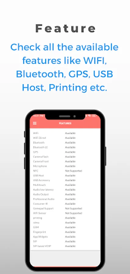 👉 Check all the available features like WIFI, Blue tooth, GPS, USB Host, Printing etc.
