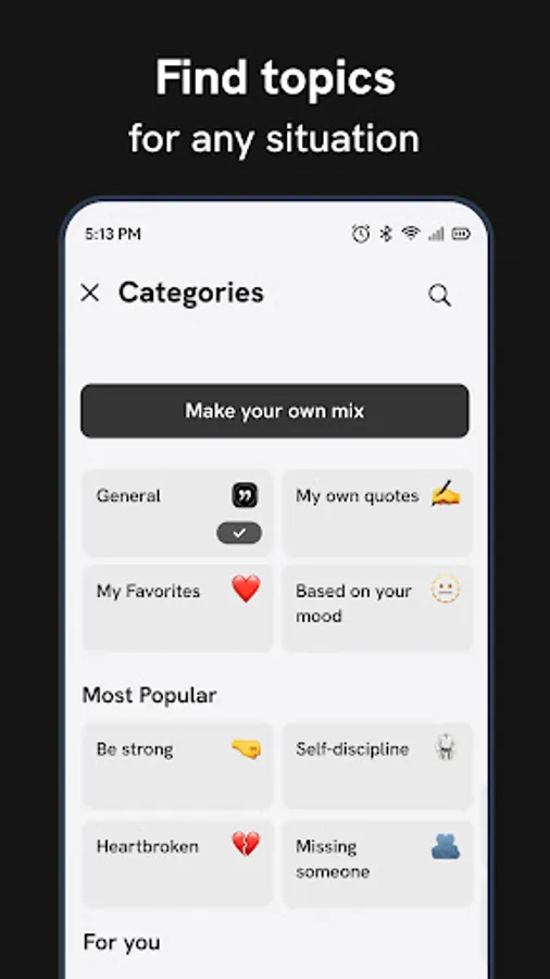 And when your lifestyle changes, so can your motivation. Simply go into the Motivation - Daily Quotes app and choose new categories. It’s that easy to adapt our quotes on the go to fit your ever-changing needs.