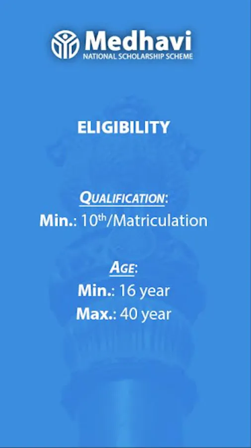The objective of the scheme is to provide financial assistance to the meritorious students, to meet a part of their day-to-day expenses while pursuing higher studies or preparation for job. Candidates of age group 16-40, who have passed class X in any stream from any recognized Board of Examination are eligible to apply under this Scheme.