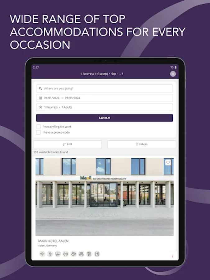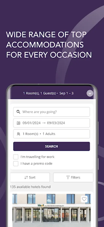 - The right hotel for everyone: Search for the right hotel with various filter options such as brand, travel budget or hotel amenities