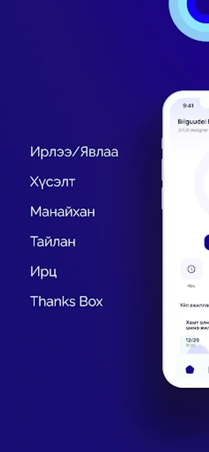 Цагаа үр ашигтайгаар зарцуулах боломжийг ажилтан, ажил олгогчид олгох хэрэглэхэд хамгийн хялбар, ойлгомжтой цаг бүртгэлийн аппликейшнд тавтай морил.