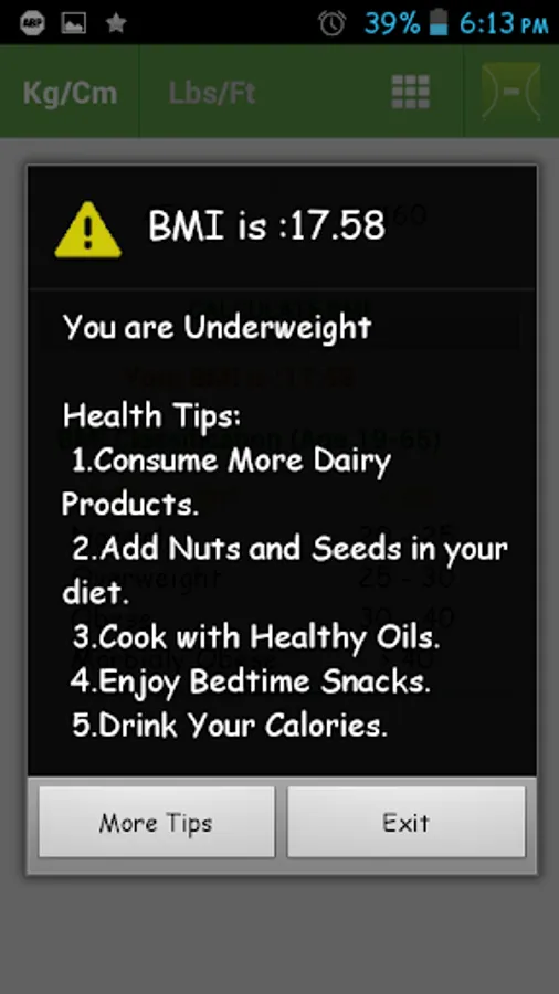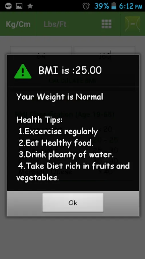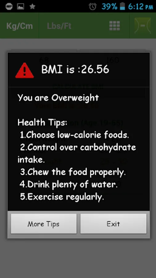 - Supports two formats of units - Metric (cm and kg) and Imperial (inches and pounds) (Use menu button for changing formats)