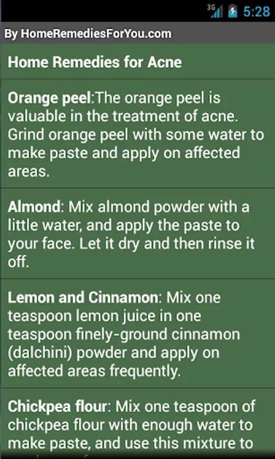 Natural home remedies (natural cure) are safe and useful for the common ailments. Most of the non life threatening illness can be treated at home. Learn how you can use natural cures to replace many of the most commonly used over-the-counter drugs in the treatment of common ailments. If you use home remedies wisely, it will save your time and money. Hope this app helps you to find your own path of healing through natural remedies.