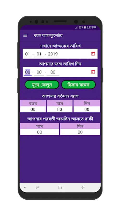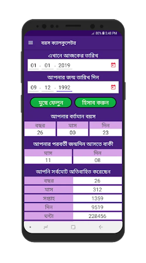 বয়স হিসাব কারি ক্যালকুলেটর - age calculation bangla