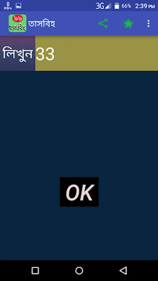 Make your mobile a digital tasbih. The menu system remains cool because you can set as your target in your calculation .You can see if you meet the target computing alert