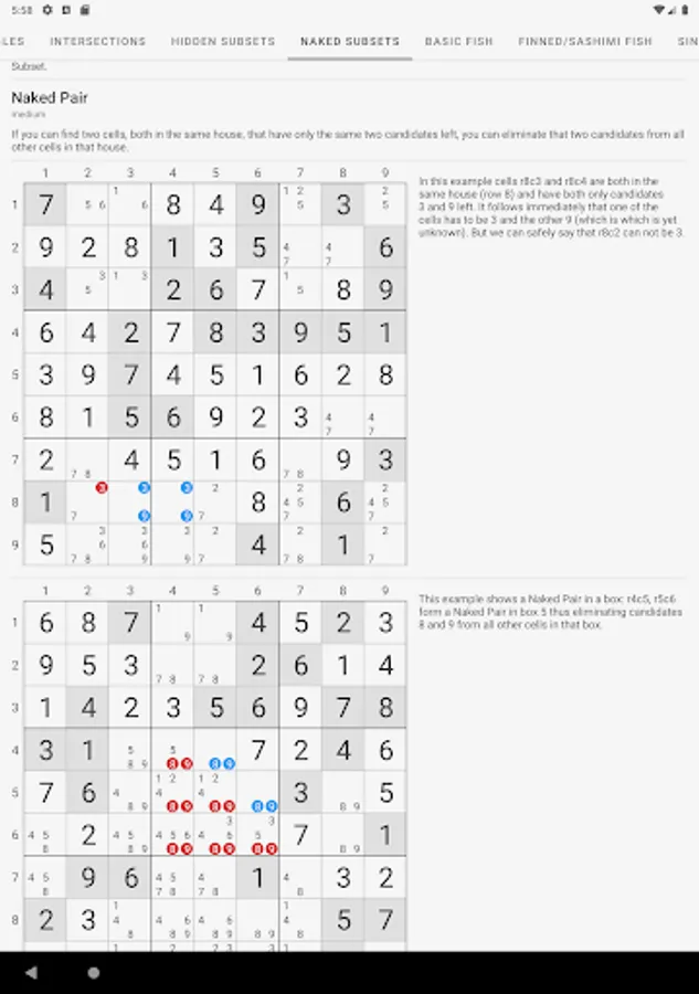 ✔️ over 60 solving techniques available at any time to help you solve the sudoku but also teach you the techniques used to deduce the answer