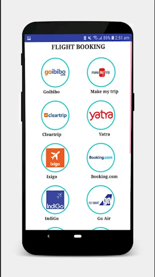 Goibibo, Make my trip, Cleartrip, Yatra, Ixigo, IndiGo, Go Air etc