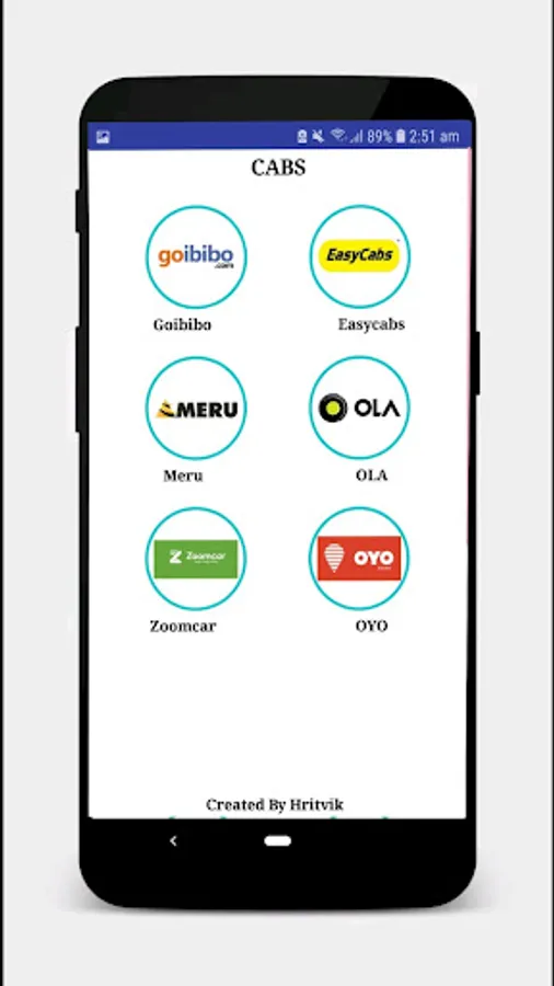 Goibibo, Easycabs, Meru, OLA, Zoomcar, OYO etc