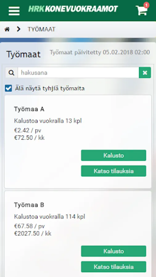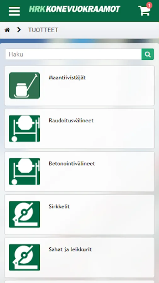 Business client application of HRK-Konevuokraamot Oy.