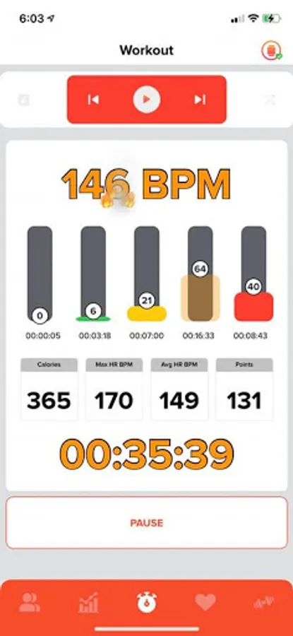 > Earn points based on the number of minutes spent in 5 different hear rate zones.