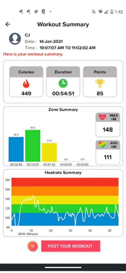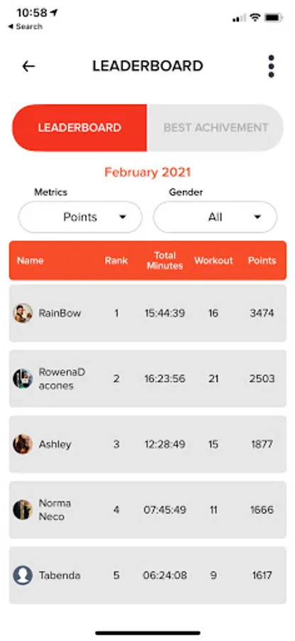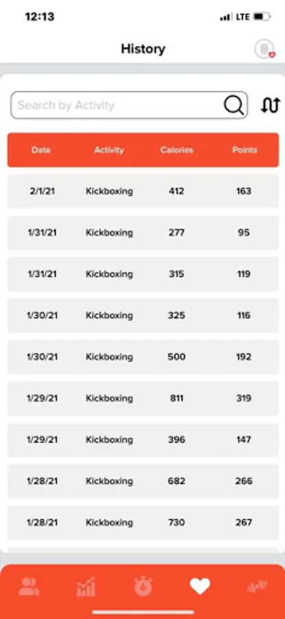 > Track workout history over time, including week, month, year and all time. View Total Workouts, Total Calories and Total Points earned for each period.