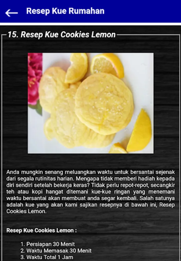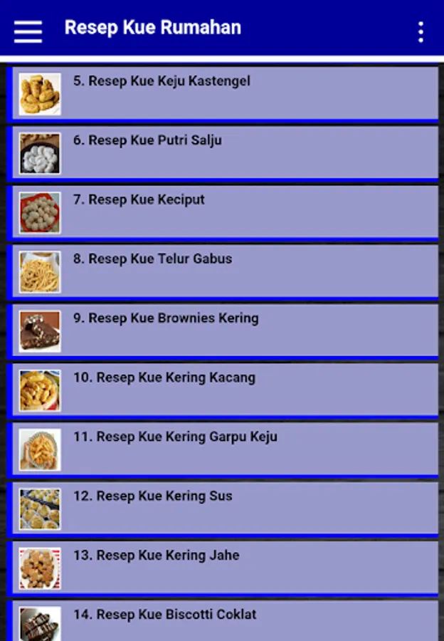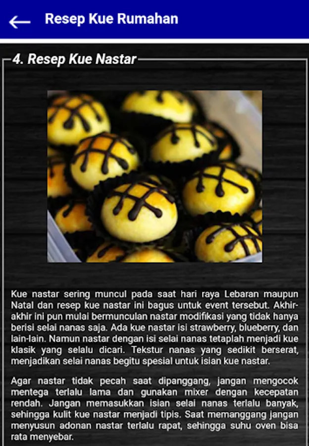 This application contains categories of pastry recipes, wet cake recipes, Kastengel cake recipes, nastar cake recipes, Lebaran cake recipes, holiday cake recipes, traditional cake recipes, cake syringe recipes, onion cake recipes, crispy cake recipes, cat tongue cake recipes, peanut cake recipe, brownie cake recipe, birthday cake recipe, Lebaran cake, Lebaran cake, Eid al-Fitr cake, how to cook cakes, how to make Eid cakes, cake making business.