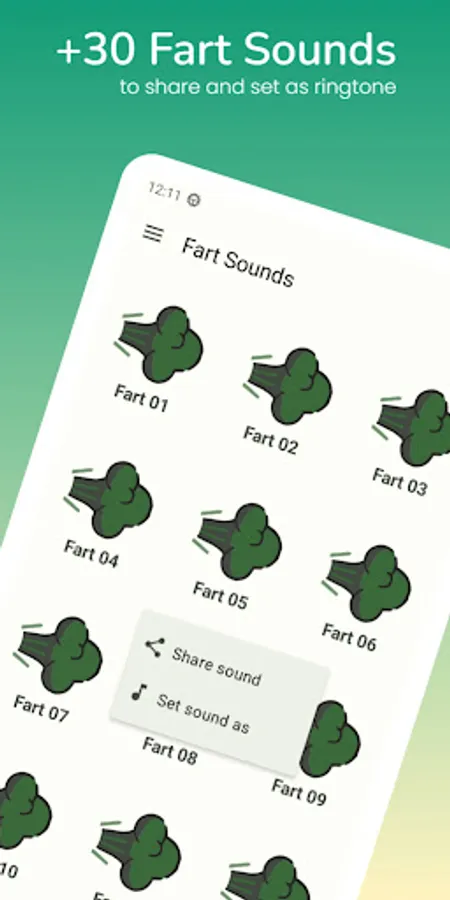 🎵 Set fart sounds as: ringtone, notification, and alarm.