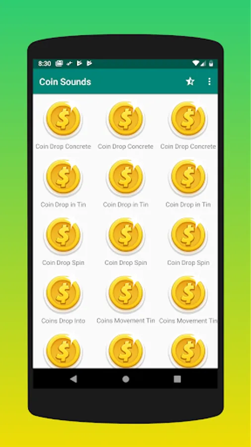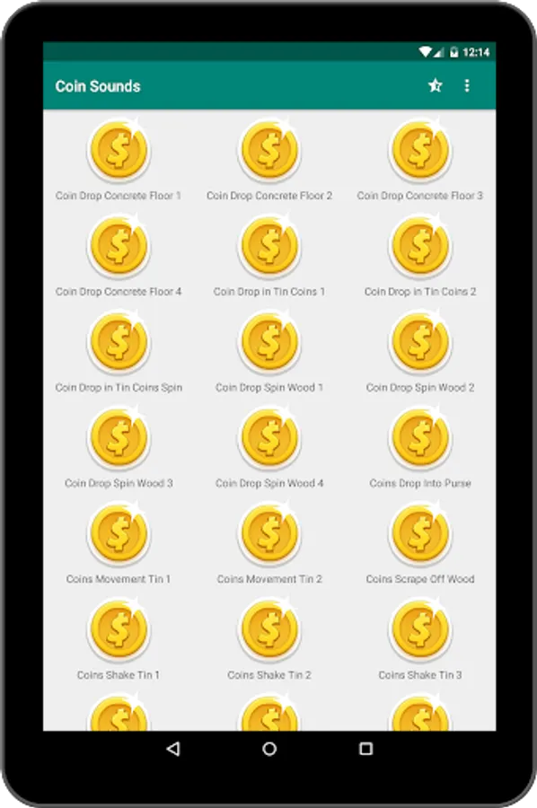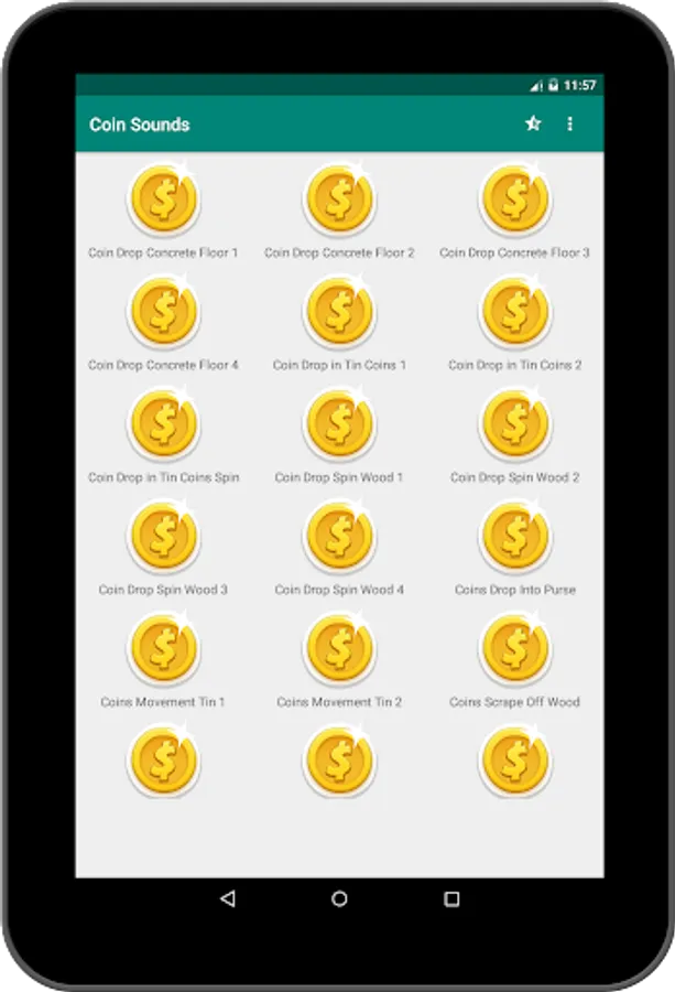 The app Coins Sounds brings more of 30 professionally recorded sound effects of many and single coin actions including: dropping on concrete; in tins; spinning on wood; dropping into a purse; shaking; lots of coins being thrown on a counter; handling and much more.