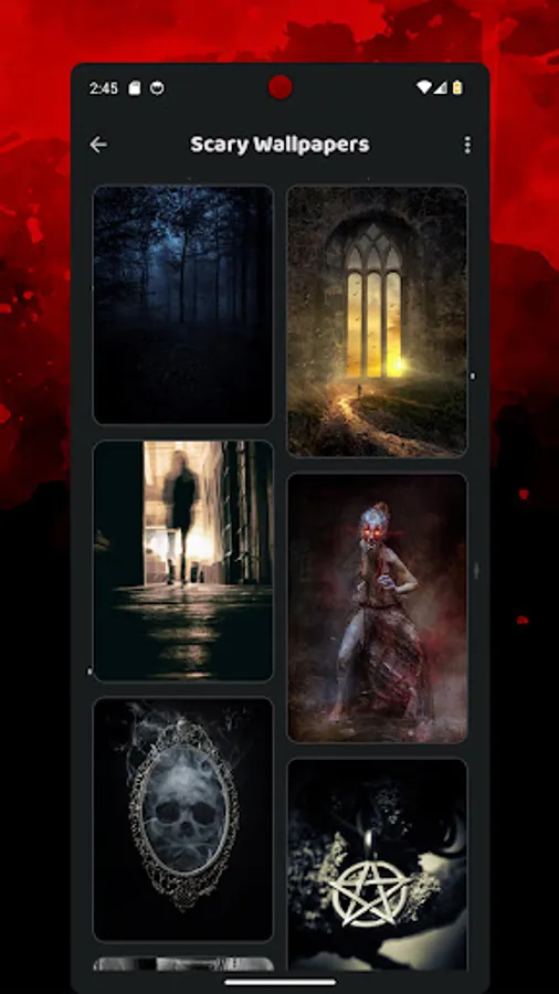 🌑 Horror Wallpapers: Explore a list of wallpapers to set as background, share or save to your device. Choose from images of ghosts 👻, zombies 💀, vampires 🦇, terrifying clowns 🤡 and other horrifying creatures. Customize the wallpaper with special effects like blood 💉, fire 🔥, fog ☁️ and more.