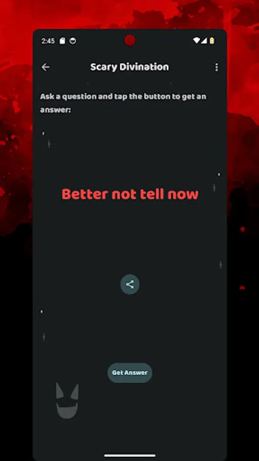 🔮 Scary fortune telling: ask a question and click the button to get an answer. Ask about your future, your love, your luck or anything else you want. But be careful: the answers may be surprising or terrifying. Share the answers with your friends on social media to increase the fun.