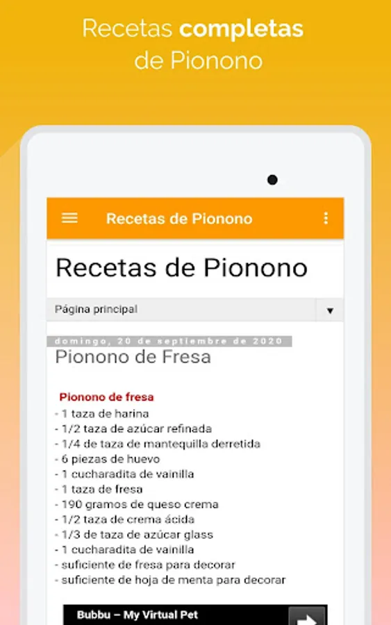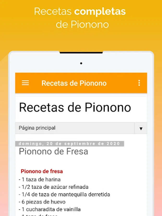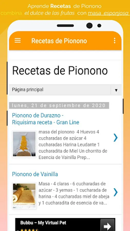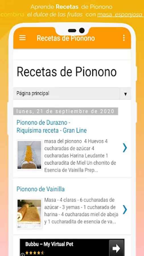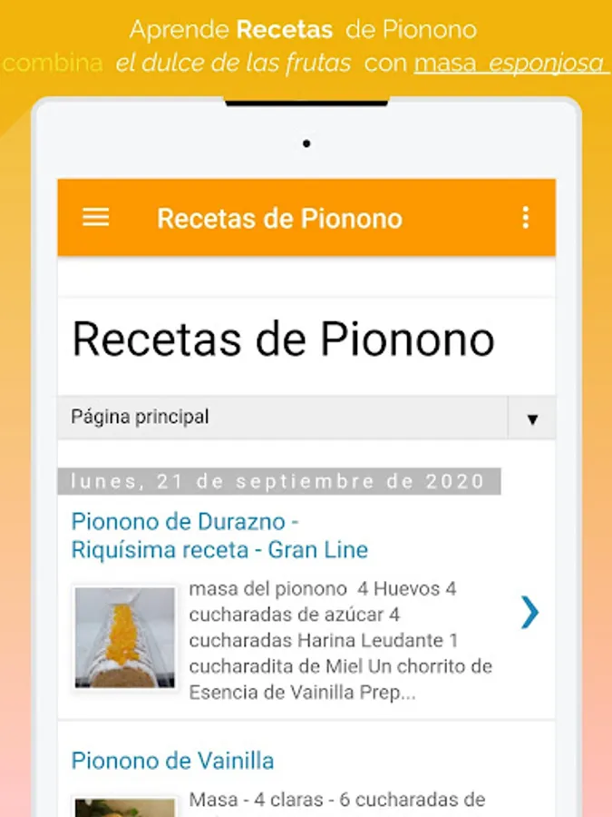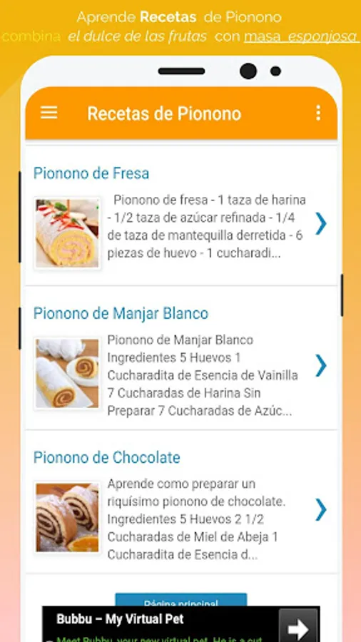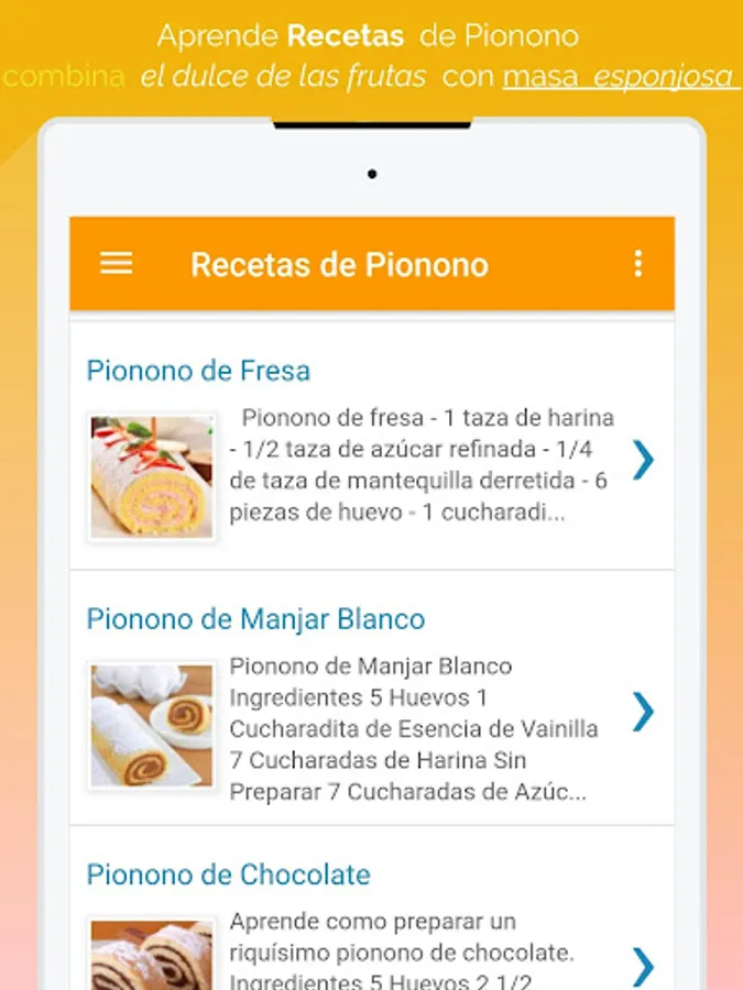 🍰 Esta app tiene recetas muy fáciles de preparar, lo cual hace que sea mas divertido aprender hacer postres como en este caso recetas de pionono con rellenos de distintos sabores.