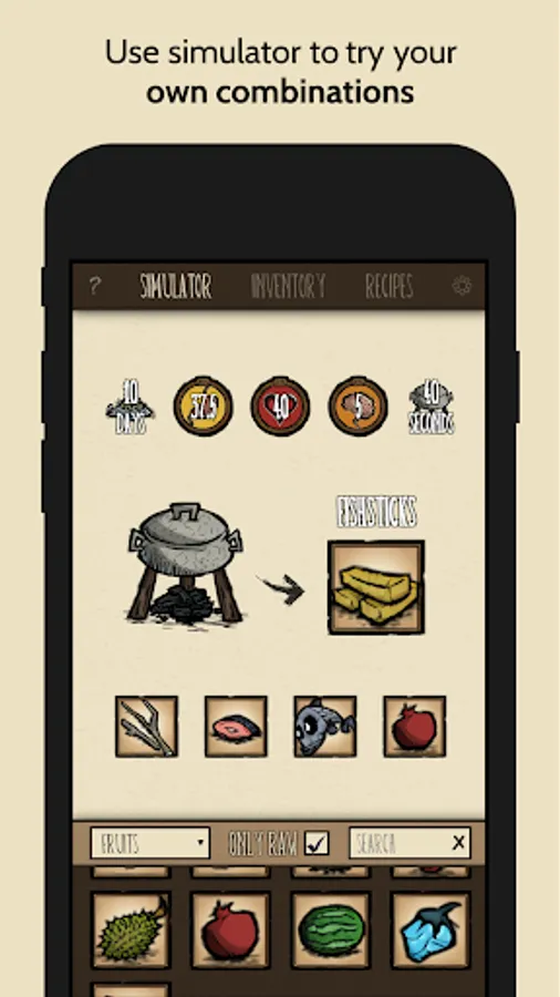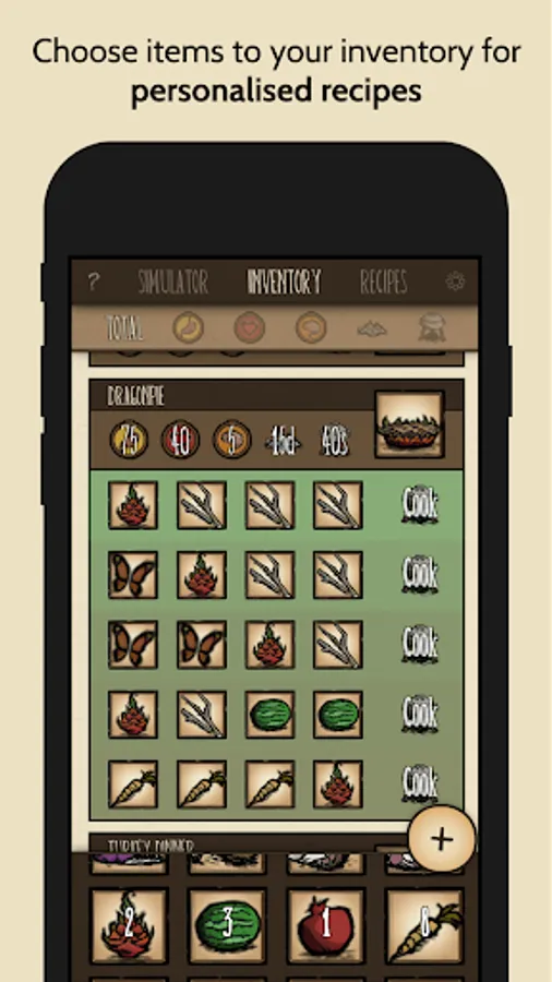 · browse through all game recipes with cooking instructions