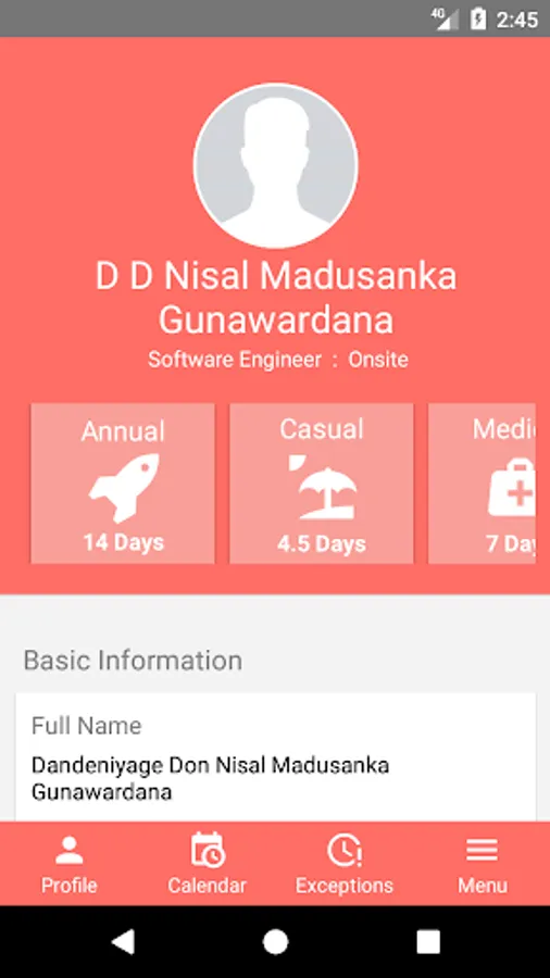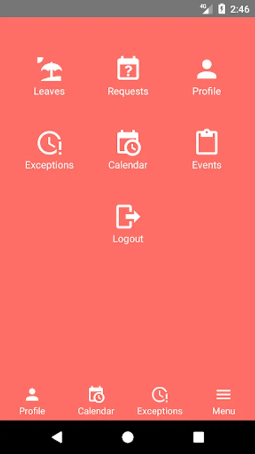 INOVA staff members allowed to self sign with the HR system login details to view leave balance, exceptions and meeting room bookings. Main request types such as miss punch, punch adjustment, leave application available though this app.