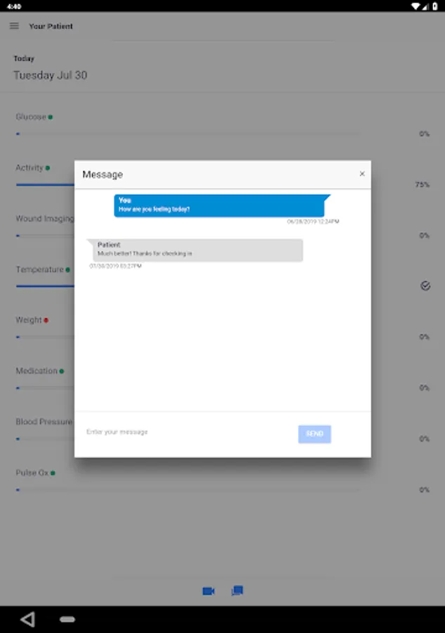 CaregiverConnect allows a family member or a caregiver to monitor patient vitals and communicate with a patient on the Health Recovery Solutions platform.