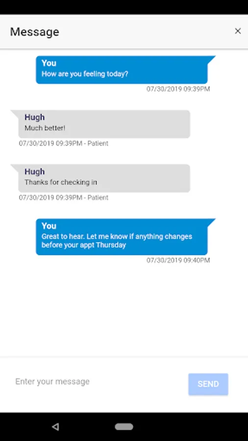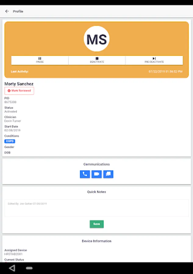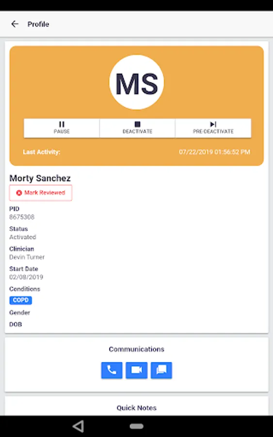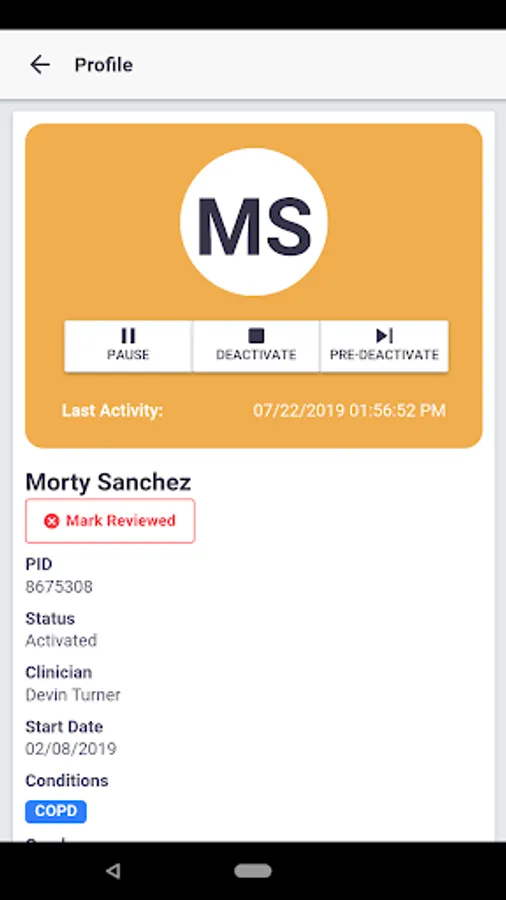 ClinicianConnect Mobile allows a clinician user on the Health Recovery Solutions platform to monitor and manage patient care directly through their phone.