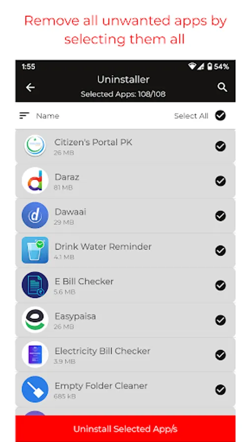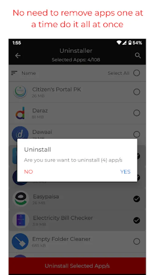 With this app you can simply clean up storage by removing unwanted apps in bulk.
