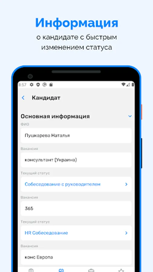 The system automates HR processes and recruiting, allows you to create a vacancy funnel and various reports