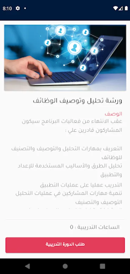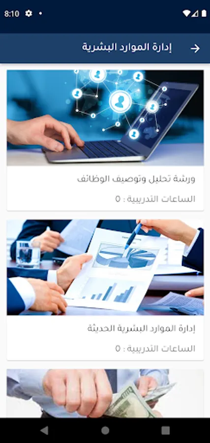 It is a smartphone application for training managers that facilitates the process of searching for training courses in all fields and specializations for training managers in institutions, companies and ministries, through which they can choose the appropriate training courses and the right time.