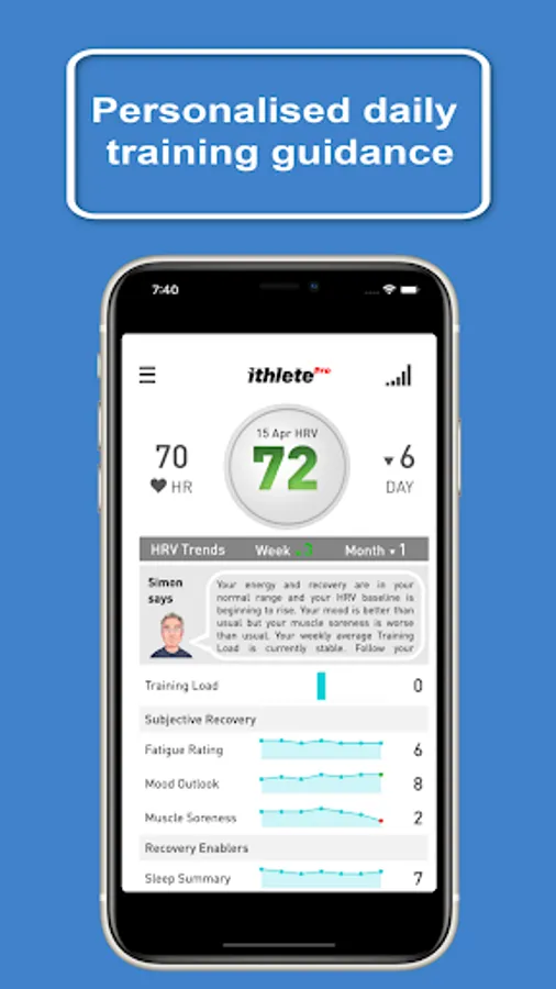 A 60 second measurement each morning will tell you how stressed, recovered and ready for training your body is. Using heart rate variability (HRV), resting heart rate and recovery enablers, such as stress, diet, sleep, and more, ithlete delivers a truly personalised training recommendation that anyone from a recreational runner to an Olympic athlete can use.
