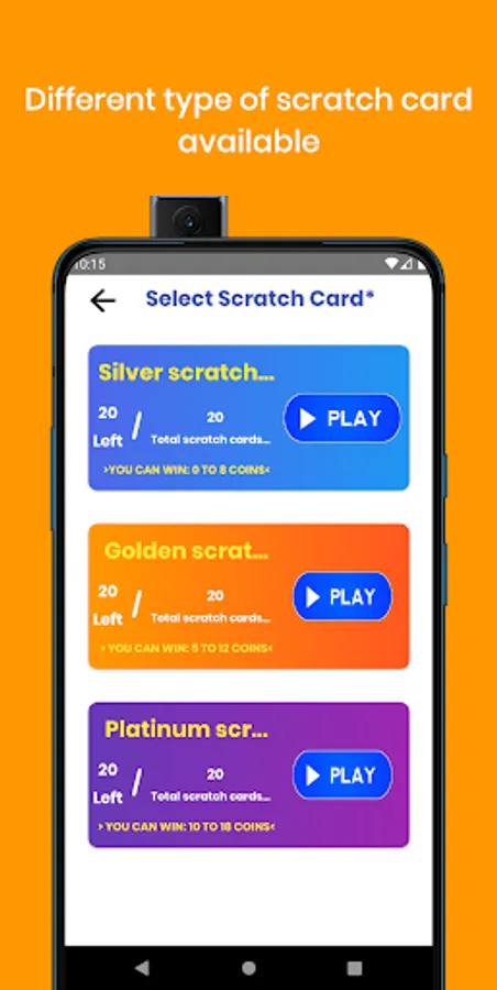 Here You Will Get 3 Stages Of Scratch Card Silver Scratch Card, Gold Scratch Card, Platinum Scratch Card And In Every Scratch Card Category You will Get 20 Scratch Card So you will Scratch and get Chance to win Cash and best Rewards.