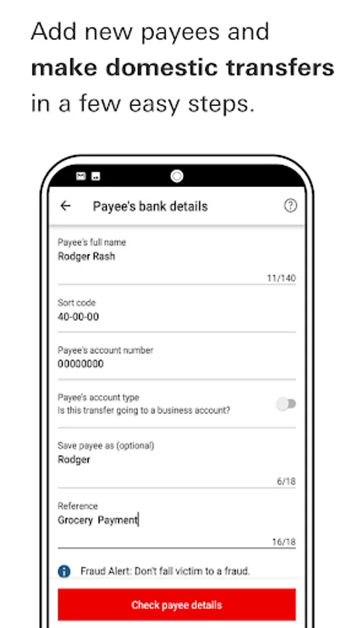 • Manage your transactions and send money to existing payees