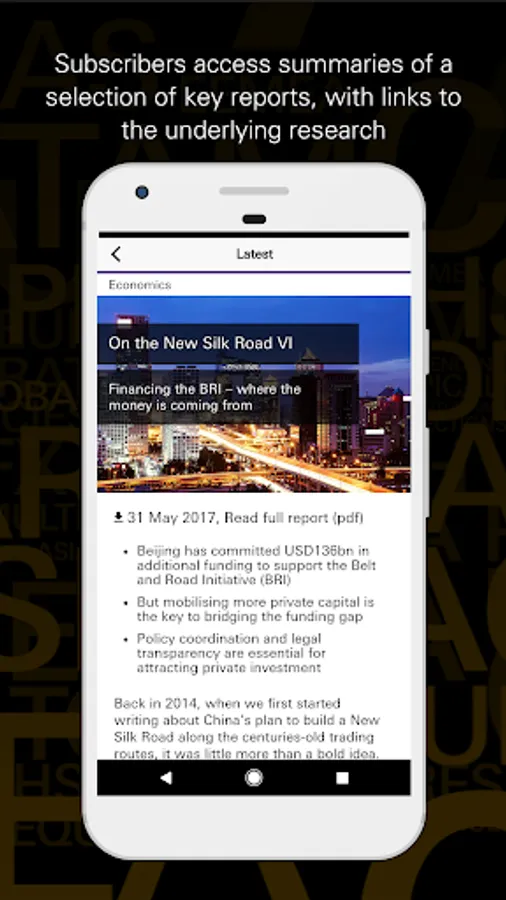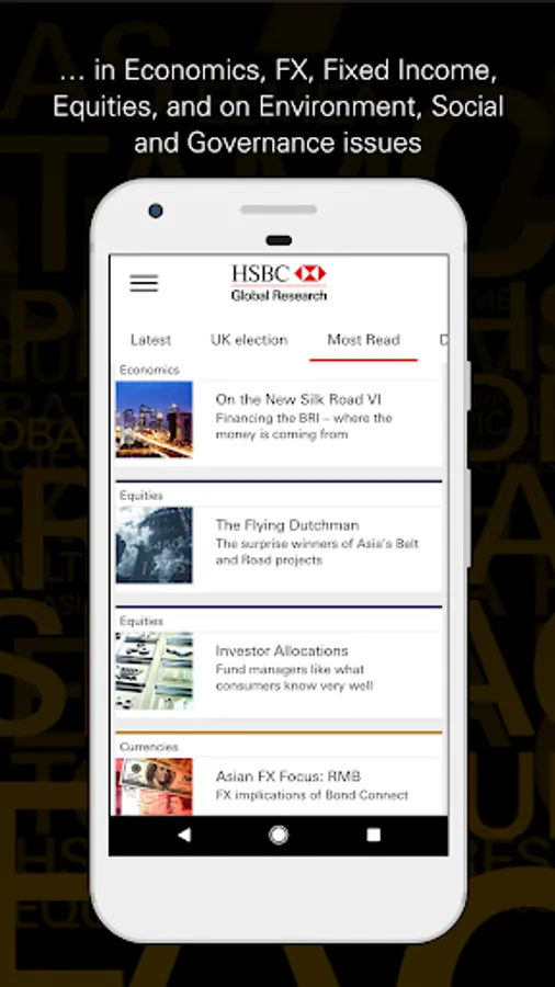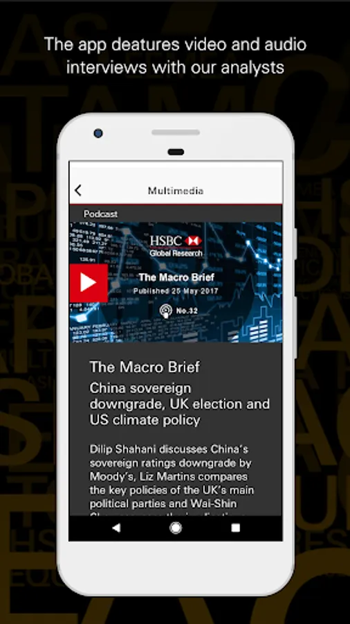 The HSBC Global Research app has the big picture on the latest trends and developments affecting the global economy and financial markets – from China and trade to the role technology plays in shaping smart cities. The app showcases key pieces of research as well as video and audio interviews with HSBC analysts.