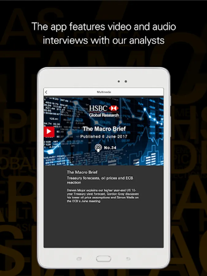 The app is provided free of charge by HSBC Bank Plc for use by clients with an HSBC Global Research login. Usual mobile phone changes may apply when using this app.