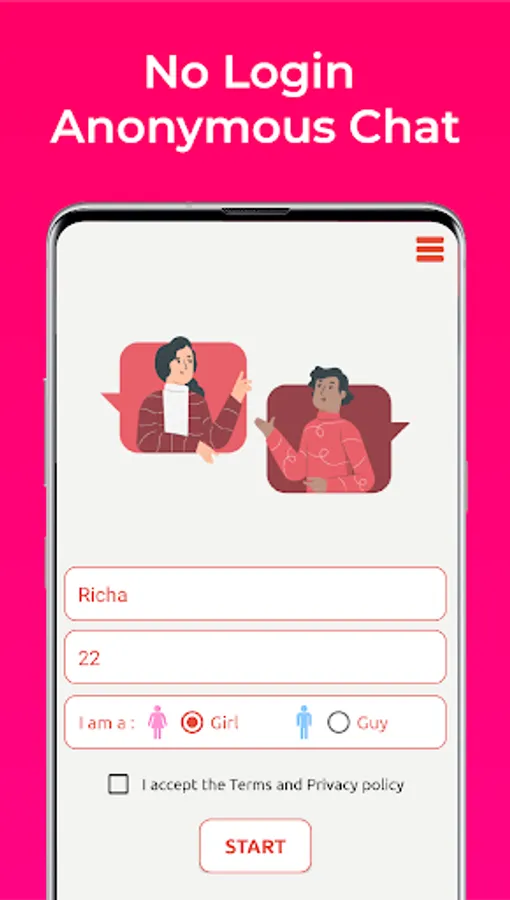 This random stranger chat app allows you to meet genuine people without worrying about safety. To begin with, this best stranger chatting app, you have to download the app from the Google Play Store. There is no need to submit a name, email ID to log in on this app. The privacy policy of the app promises to not share or sell this information to third parties.With this chatting app, the team aims at creating a secure and safe platform for everyone to build new friendships.